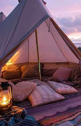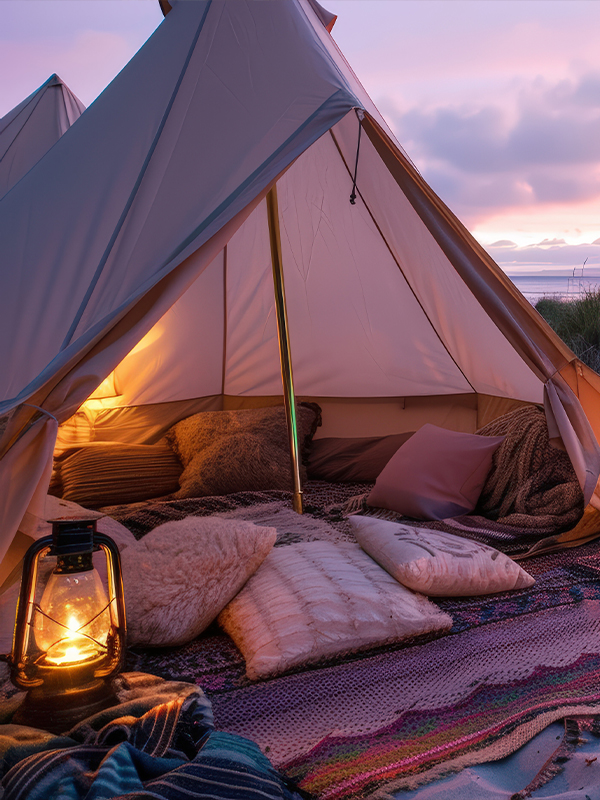 Plongez dans l’ambiance chaleureuse d’une tente berbère inspirée du Maroc, entre lumières tamisées et décor oriental.
