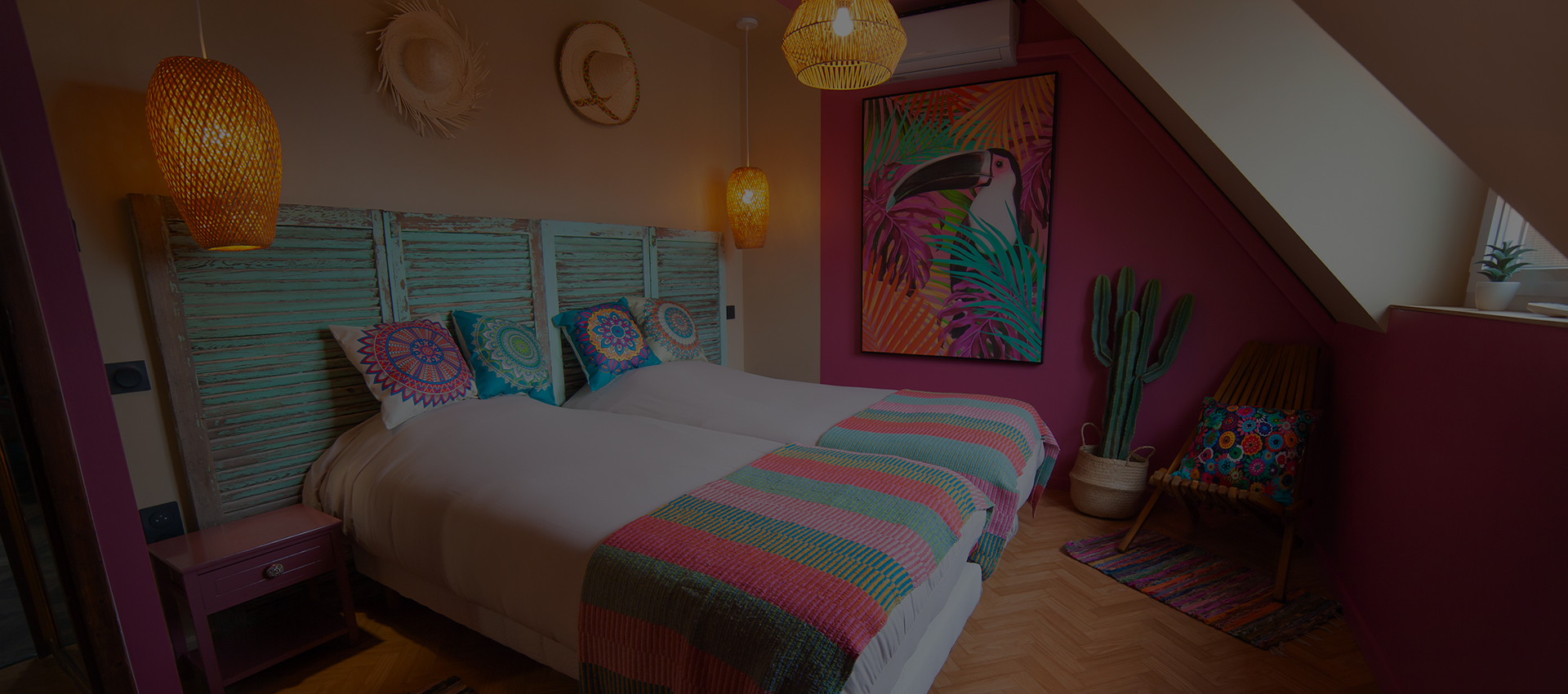 Bienvenue à L'Hacienda, un gîte au charme mexicain où chaque espace vous transporte dans l'univers vibrant du Mexique. Découvrez nos ambiances colorées, inspirées des traditions et de la culture mexicaines. Chaque chambre offre une atmosphère unique et chaleureuse. Entre couleurs éclatantes et décor typique, vivez une expérience authentique et dépaysante au cœur de notre havre de paix.